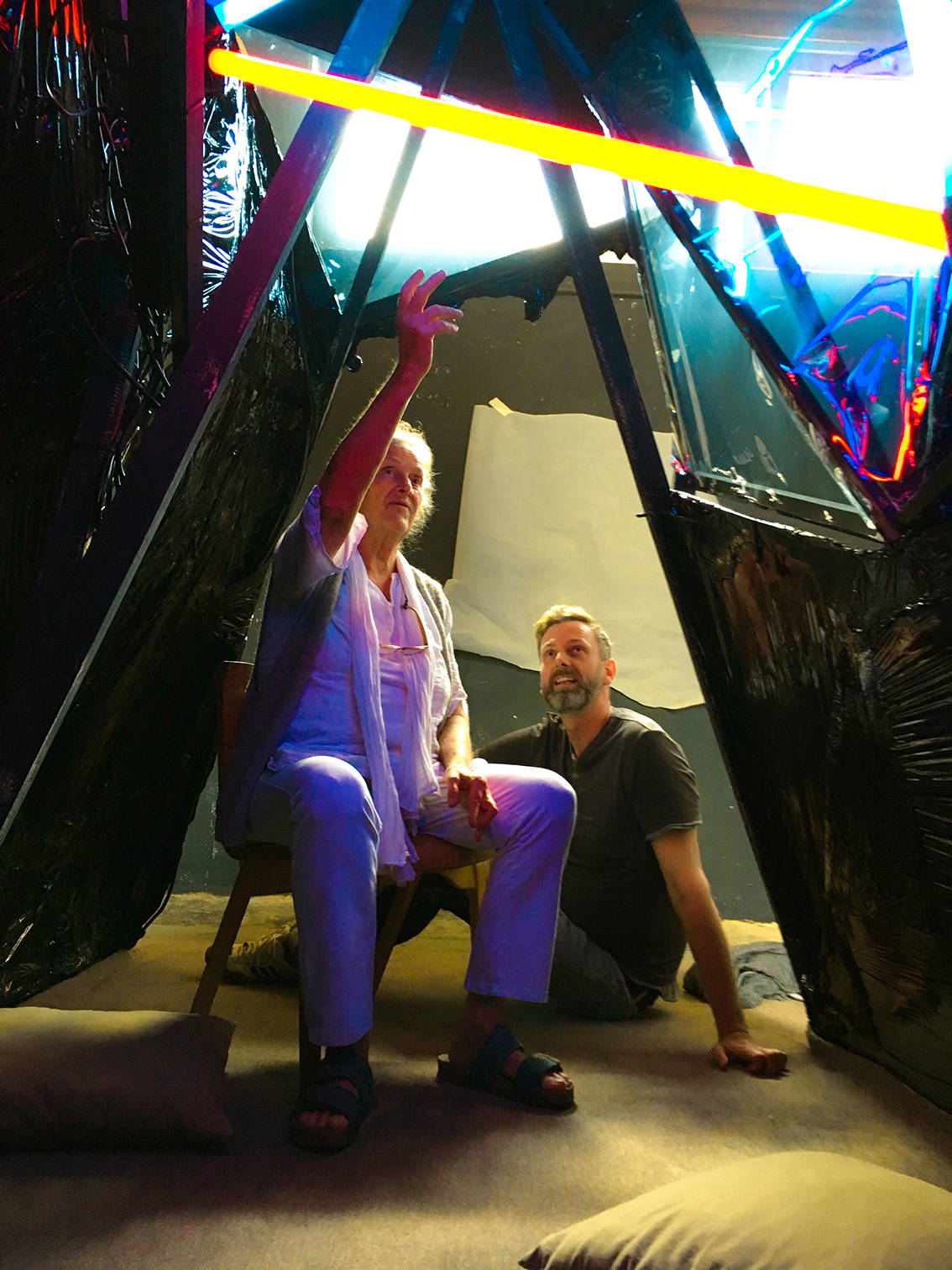Mary Bauermeister mit Master’s Student Ralf Kosmo ‚Black Summit‘ an der Alanus Hochschule, 2019